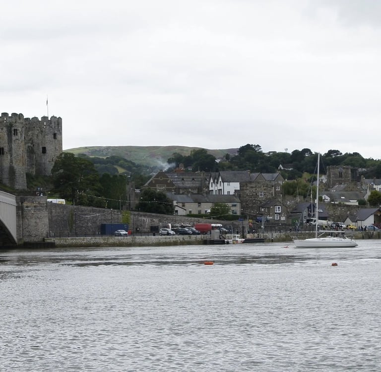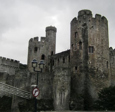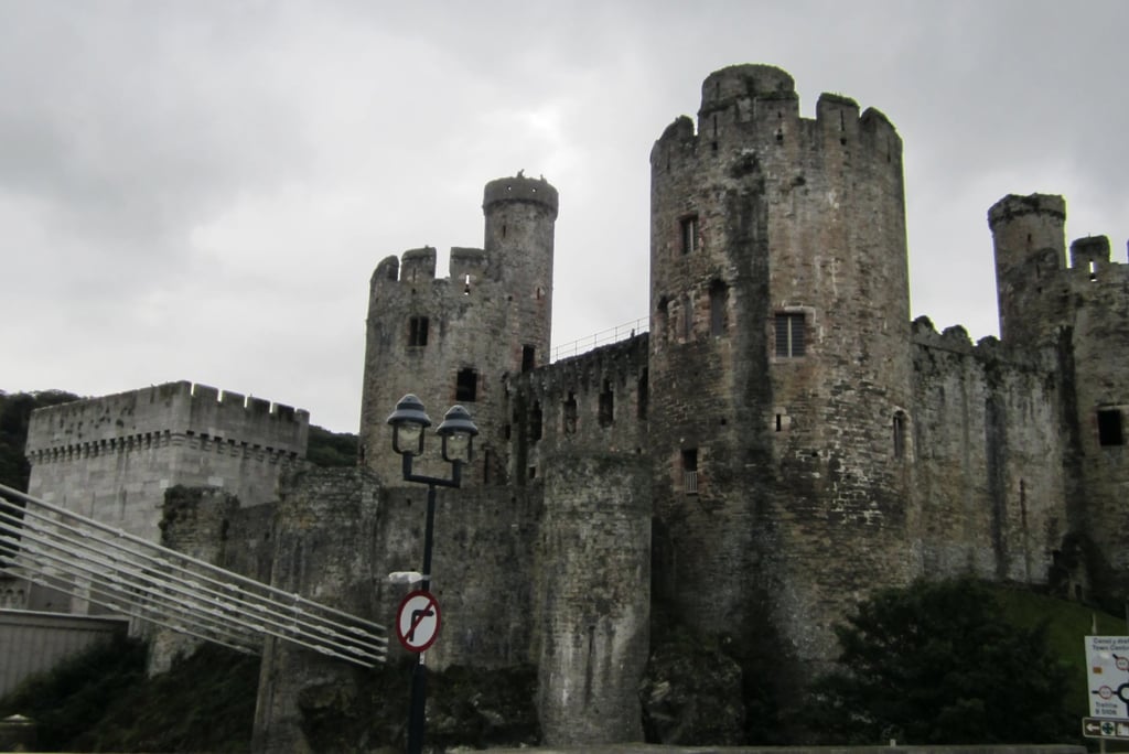 Eine dreiviertel Stunde später komme ich in dem kleinen Dorf an, das sich auch ganz auf Tourismus eingestellt hat. Mir fällt erneut auf, wie viel Alltagsverkehr auf diesen Straßen unterwegs ist. Als ich nach Studium einer Ortskarte in Richtung der “Swallow Falls” Wasserfälle marschiere, kriege ich nach einer Weile Zweifel und kehre wieder um - schließlich sollte diese lokale Attraktion fünf Meilen entfernt liegen, und ich will nicht unbedingt eine Stunde in die falsche Richtung stiefeln. Mein Verdacht bestätigt sich: die Karte ist nicht wirklich nach den Gegebenheiten ausgerichtet - allerdings hätte es auch einen Bus gegeben, aber den habe ich nun verpasst, und der nächste fährt erst in einer Stunde wieder. Ich laufe noch ein wenig herum, aber es gibt außer B&Bs, Souvernirshops und kleinen Läden nicht wirklich viel zu sehen. Natur hätte mir schon gereicht, aber dafür müsste ich mehr Ortskenntnis besitzen und mich abseits der Straßen bewegen. Also erwerbe ich noch einen angeblich “vor Ort” gebackenen “Welsh Fruitcake” (“Bara Brith”) - was hoffentlich keine falschen Vermutungen über meine Ausrichtung in Sachen Unterleibsfreuden impliziert - und entere den Zug in Richtung zurück. Unterwegs gibt mir eine steinalte hakennasige Omi einen Wink, dass die für Fotos besser geeignete Seite des Zugs links in Fahrtrichtung liege. Und sie hat Recht. Bei einem längeren Zwischenhalt steht sie auf, zwinkert mir verschwörerisch zu und meint: “I’ll go for a smoke.” und hutzelt sich mit Stock und Fluppe direkt vor das “No Smoking”-Schild draußen. Wohl ein stillschweigend geduldetes Vorrecht von Mitbürgern, die so alt sind wie die denkmalgeschützten Häuschen hier. Spontan steige ich nahe Conwy aus, in der Hoffnung, dass ich dem Ort dieses Mal näher komme als zur Zeit meiner ganz persönlichen Sintflut.