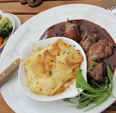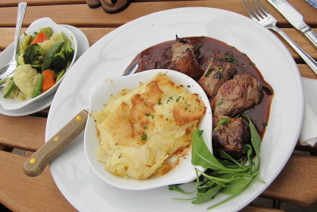 Allerdings geht es auch hier wieder unglaublich geschäftig-touristisch zu. Not my piece of cake. Ich nehme den Bus zurück, wundere mich über ein paar weibliche Teenager, die kaum aufgebrezelter und “billiger” wirken könnten und setze mich erneut ins “The Albert”, denn die anderen Lokale haben einfach nur immer die selben Standardgerichte zu bieten. Der Koch ist Waliser, wie ich erfahre (was einige französische Gerichte wie das “Cassoulet” auf der Karte nicht unbedingt vermuten lassen), das Lamm mit Gratin Dauphinois (tja, die Franzosen...) ist klasse.
