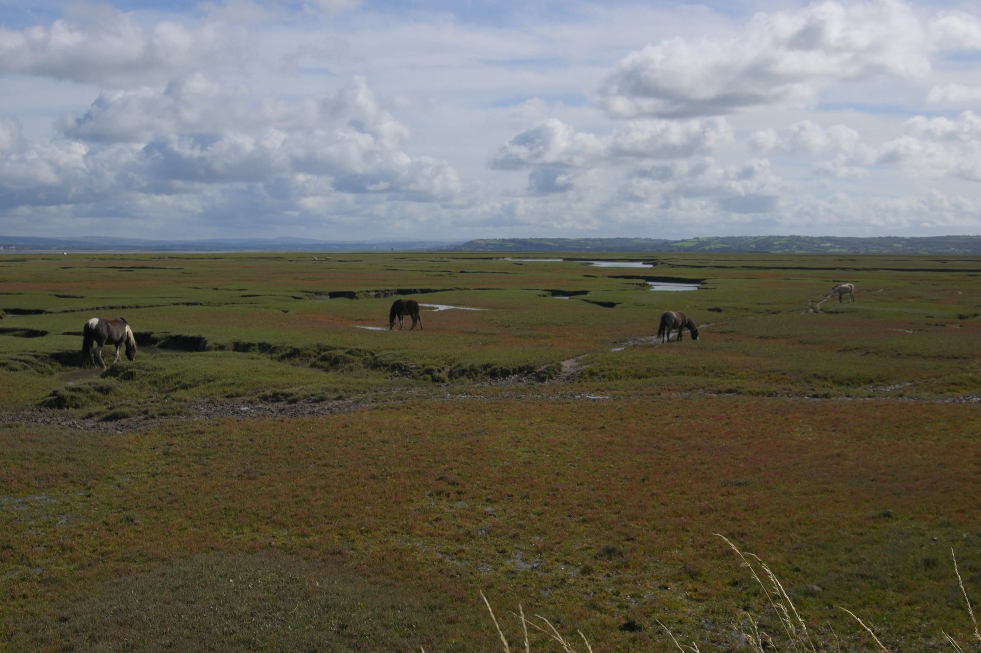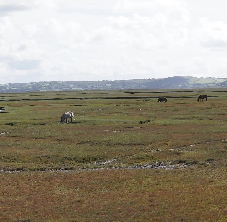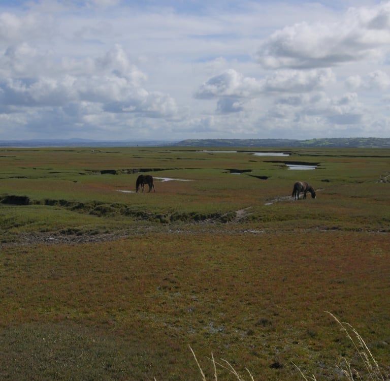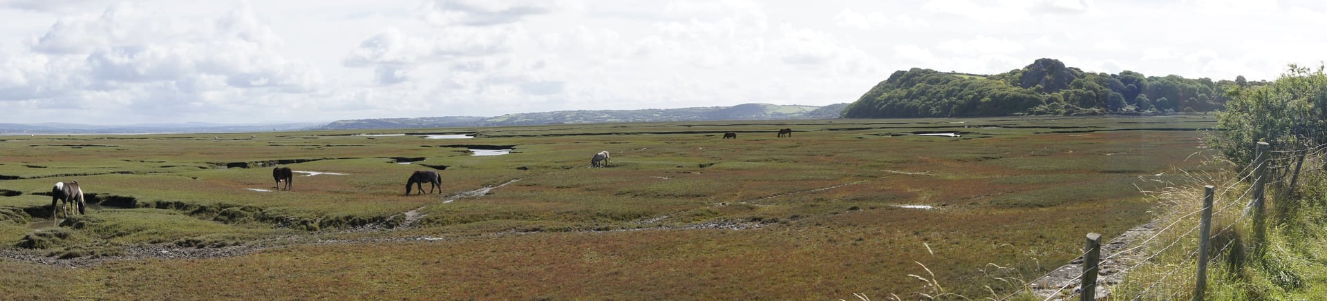 Der Wetterbericht klingt verhalten positiv bis zum Nachmittag (Triumph!) - daher befrage ich David (der mir mit einem anerkennend-erstaunten Blick wieder Räucherhering kredenzt), der tatsächlich Waliser ist und zudem passenderweise Kartograph im Ruhestand, was er denn als Route vorschlagen würde für eine Erkundung der Umgegend und visuell Ansprechendes. Nach dem örtlichen kleinen Laden (eine Kooperative des Dorfs, wie es sie zunehmend in ländlichen Gebieten der Insel gibt) aufwärts zum Llanmadoc Hill für einen Rundblick - und dann abwärts zum Marschland des Gower.