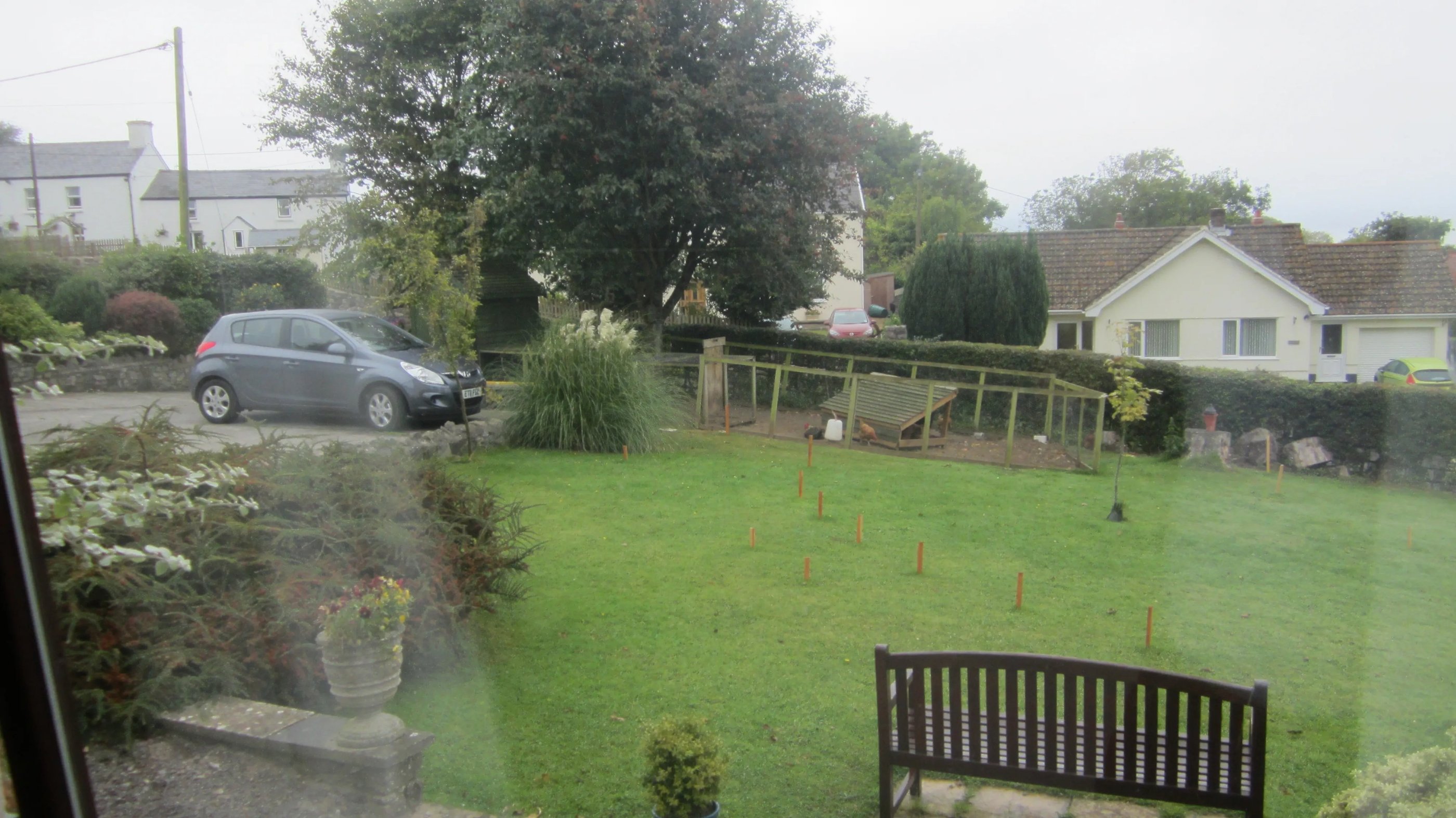 Es regnet in Strömen, und nach einigen Kilometern bzw. Meilen bemerke ich erste Gemeinsamkeiten mit Festland-Europa: auch hier gibt es Staus. Zäh bewegt es sich in Richtung Norden. Erst, als ich von der Stadt in ländlichere Gebiete komme, entspannt es sich ein wenig. Es scheint Usus, einen Mietwagen nicht mit vollem Tank zu übergeben - wie ich nach einiger Zeit mit leichtem Entsetzen feststelle - zum Glück liegt eine der doch vergleichsweise spärlich gesäten Tankstellen an meiner Strecke (gekennzeichnet durch Ankündigungen wie “A464 North - Services: 16 m” - “miles”, nicht “Meter”!). Zweite Gemeinsamkeit: auch angelsächsische Jauche besitzt eine ähnlich-komplexe olfaktorische Vehemenz wie ihr teutonisches Äquivalent.