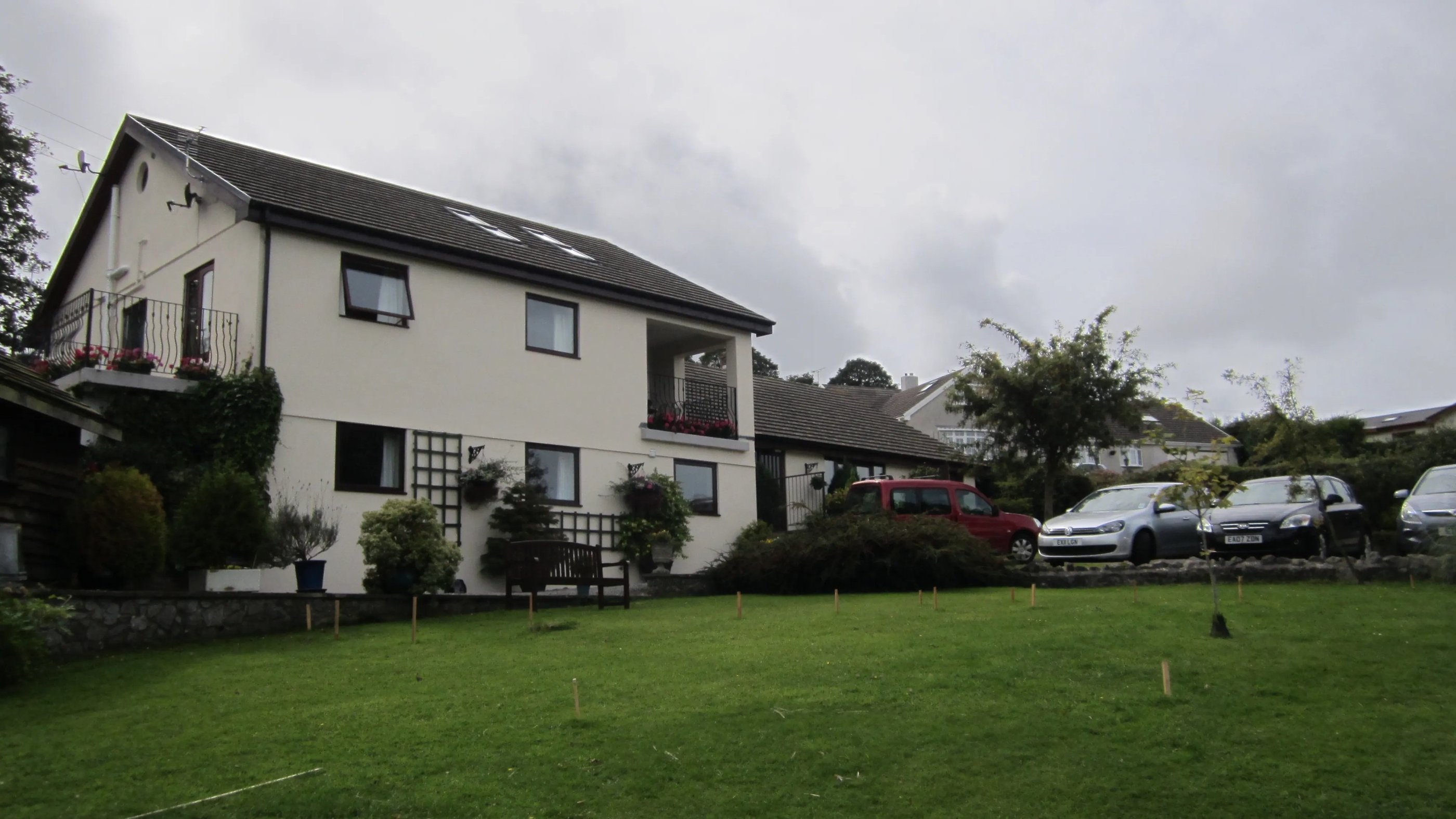 Llandudno präsentiert sich am letzten wie am ersten Tag meines Besuchs: leicht bewölkt, aber hin und wieder klar. Die Nacht war jedoch kühl. Um kurz nach Neun, nach meiner zwischenzeitlichen Lieblings-Frühstückscombo aus Smoked Haddock (geräuchertes Schellfischfilet - wie das meiste Geräucherte warm gereicht!), Roasted Tomatoes, Scrambled Eggs und einem Sausage Sandwich mit Senf verabschiede ich mich kurz, aber herzlich von John und Marie (die mir noch zwei Küsschen auf die Wange drückt) sowie Martyn und Linda (die in Bezug auf meiner vormalige Bemerkung, die Kelten seien auch am Bodensee gewesen, womit ich ja vielleicht einen entfernten Cousin hier haben dürfte, Ähnlichkeiten zu ihrem Waliser Schwiegersohn aufzeigt - es gibt tatsächlich äußerliche Gemeinsamkeiten, aber er hat weniger Haare als ich!). Kurz überlege ich noch, ob ich einen Zwischenhalt auf Anglesey oder Mount Snowdon einlegen soll, aber ich will irgendwie weg von dem Tourismus, und Linda hatte mich gewarnt, dass die Bergbahn zum Snowdon wahrscheinlich durch Reisebus-Gesellschaften ausgebucht sei. Daher mache ich mich auf durch die abwechslungsreiche Landschaft gen Südwales und winke dem Snowdon im Vorbeifahren zu.