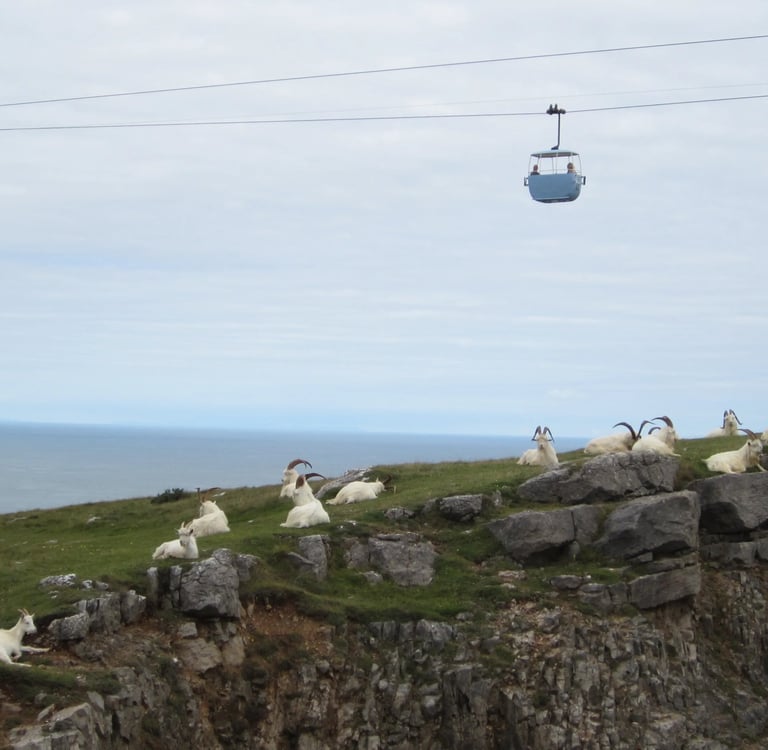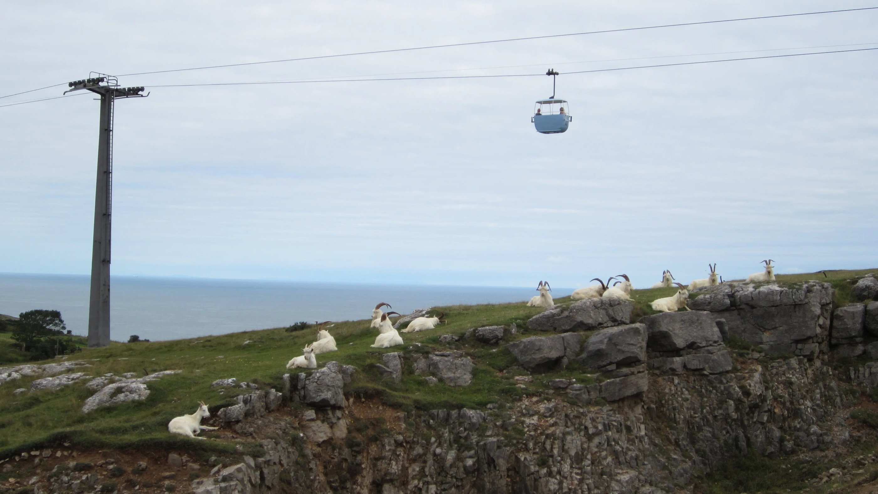 Daher laufe ich auch zur Zwischenstation hinunter und lasse mich wieder hinabgondeln - nicht, ohne die auf dem Berg beheimateten Kaschmirziegen bei ihrem Brunch unter der Seilbahn abzulichten.