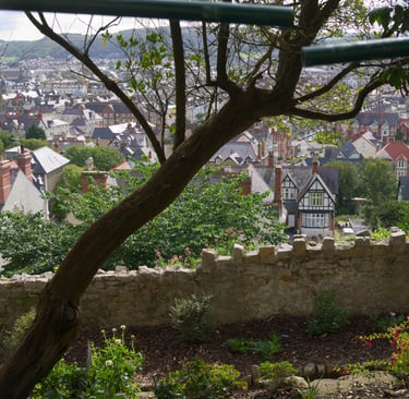 Als ich mich auf den Weg mache, zeigt sich jedoch hin und wieder die Sonne, und als ich ein Notizbuch für meine Reisedokumentation erworben habe, mache ich mich an den Aufstieg zu einer der höchst gelegenen Straßen im direkten Stadtgebiet Llandudnos.