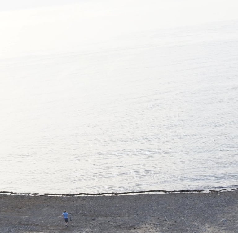 Es ist nicht viel los, lediglich tummeln sich ein paar Feriengäste am überschaubaren Strand, vornehmlich Familien (wobei ich dachte, die Schulferien seien vorbei). Ein dicker Mann nötigt seinen keuchenden Hund immer wieder durch Hol-den-Ball dazu, bemerkenswerte Strecken im Meer zu schwimmen - mit dem Ball im Maul. Die Rollen würde ich gerne mal vertauscht sehen: los, Dickerle! Hol das Balli! - Aber die Welt ist so, wie sie ist.