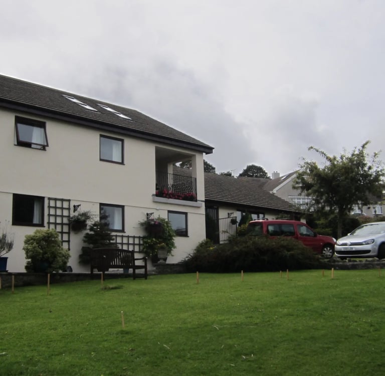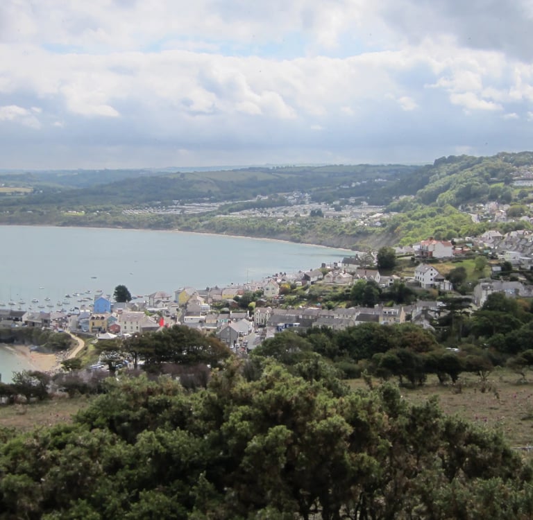 Dieser alte Mann ist weder D-Zug (Interregio) noch Bergziegenbock - aber ich schaffe die Strecke, die offiziell mit zweieinhalb bis drei Stunden beziffert war, trotz kleiner Zwischenstopps in zwei. Dennoch bin ich kaputt und heilfroh, als hinter der letzten Hügelkuppe die kleine, mir bekannte Bucht auftaucht, und ich mich schließlich auf der Terrasse des kleinen Teilzeit-Cafés meiner Gastgeber niederlassen kann. Ich habe einige schöne Ecken dokumentiert auf meinem Weg - aber heute mache ich definitiv keine Fernmärsche mehr. Der todesmutige Busfahrer schaukelt mich ein letztes Mal hoch zum “Crown Inn”, wobei er so vertieft ist in eine Diskussion mit einem älteren Ehepaar, von dem der Mann sich als “Druide” bezeichnet, dass er glatt meinen Halt vergisst - aber der Irrtum wird schnell korrigiert. Druiden trifft man ja nicht jeden Tag. Vermutlich.